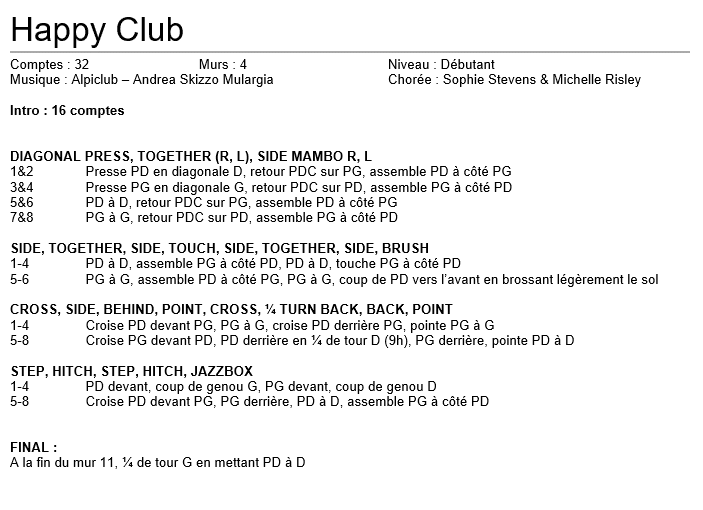 Et, je l’avoue, il m’arrive de légèrement modifier une chorée pour les besoins d’un spectacle, ou pour adapter le niveau à mes danseuses, ou simplement parce qu’à l’oreille et à danser, un ou 2 pas me chagrinent.